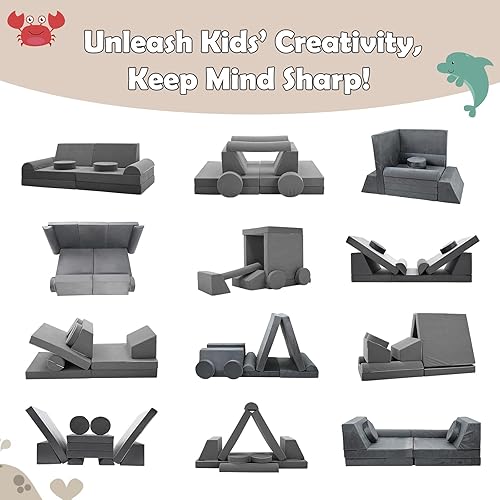 Meulbaty Canapé de jeu pour enfants, composé de 10 blocs de mousse, modulable, modulable, pour jouer, être créatif, dormir