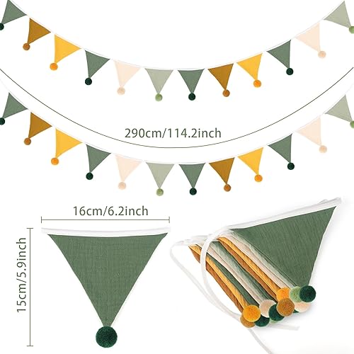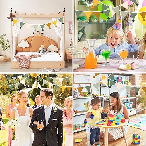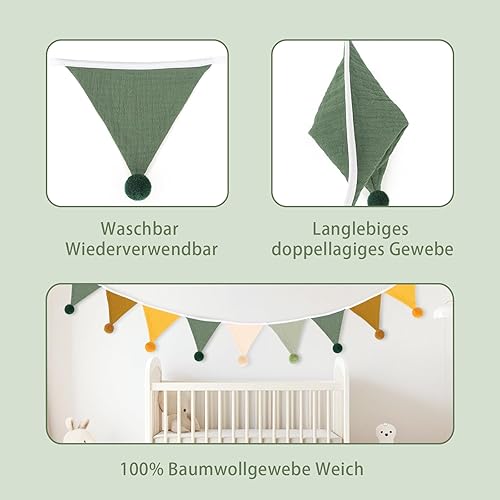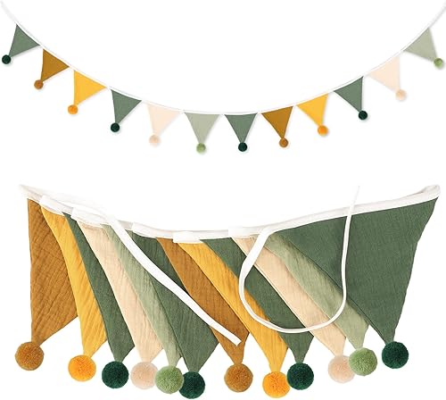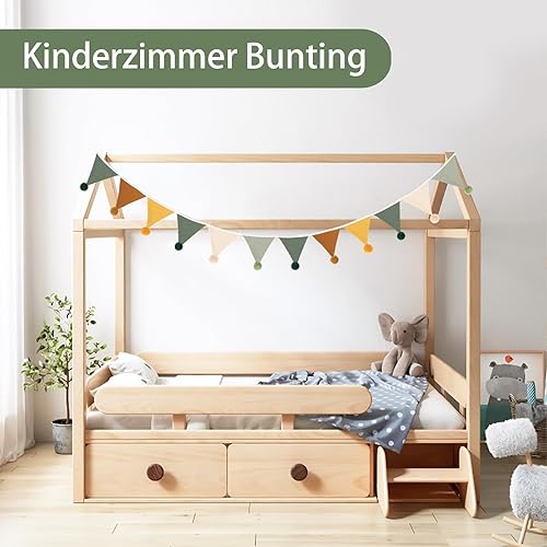 N&T NIETING Guirlande de fanions pour chambre d'enfant, décoration à suspendre, 2,9 m, en tissu, avec 12 fanions pour lit de maison, décoration de fête d'anniversaire d'enfant (avec petits pompons)