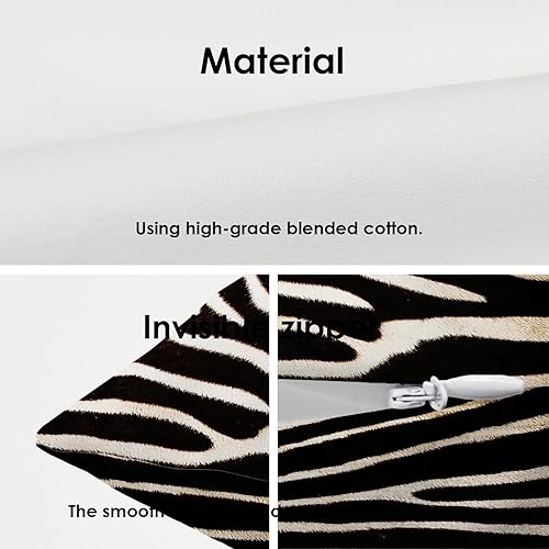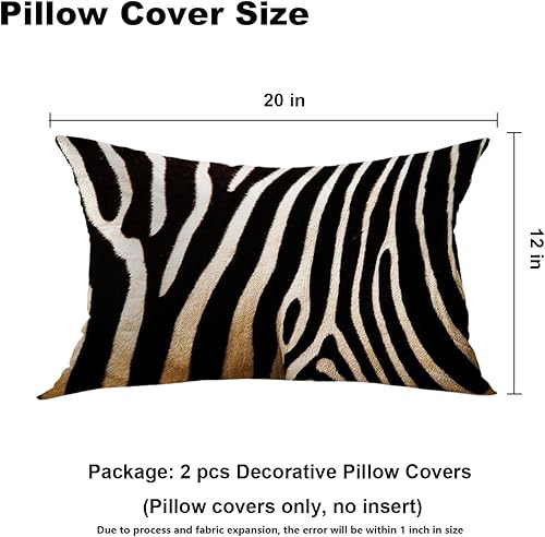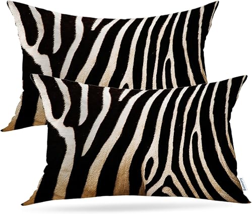 Batmerry Zebra Animal Black Throw Pillow Covers,Black and White Animaled Stripe Zebra Decorative Pillow Covers Digital Printing Blended Fabric for Couch Sofa Bed Invisible Zipper 12X20 in