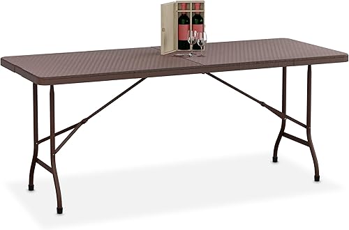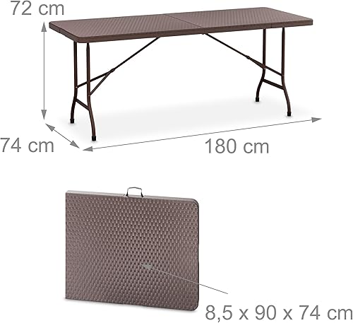 Relaxdays Table de Jardin Pliante, 72x180x74 cm, Plastique et Acier, résistante aux intempéries, 8 Personnes, Marron
