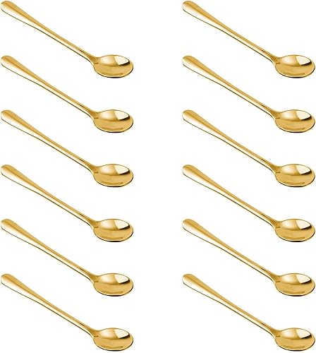 BOXOB Lot de 12 Petites Cuillères en Acier Inoxydable, 7,4 x 1,6 cm Mignonnes Petites Cuillères à Condiments Pratiques pour Les pots à Épices le Sel Sucre le Miel Café la Crème Glacée