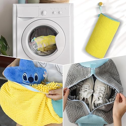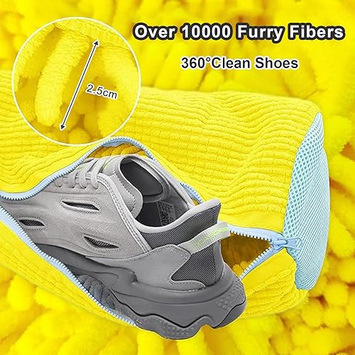 Sacs à Linge pour Chaussures 2 Pièces, JINYJIA Sac Lavage Chaussures Réutilisables, Sac à chaussures pour machine à laver Nettoyage des Peluches à 360° Portable Nettoyage efficace,Jaune