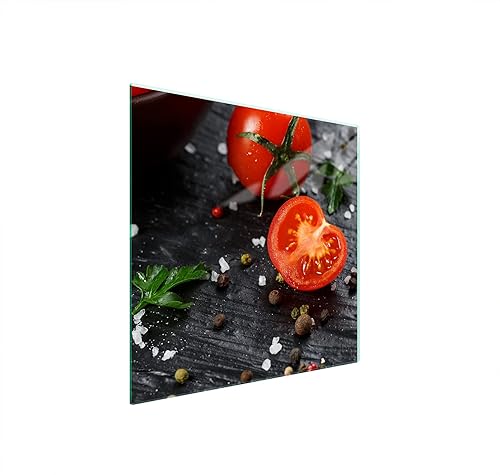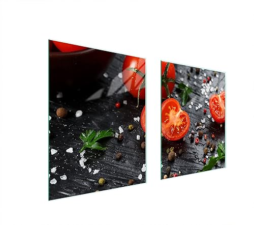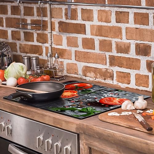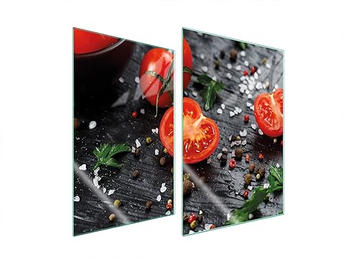 DarHaus Plaque de protection universelle pour plaque de cuisson 65 x 52cm 2 pièce Pour plaques de cuisson Protection contre les éclaboussures Planche a découper en verre trempé, Tomates Bois