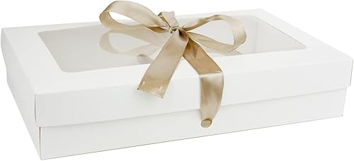 Emartbuy Lot de 12 boîtes cadeaux rectangulaires en kraft Noir avec couvercle Transparent et ruban satiné 21 x 12,5 x 2,5 cm