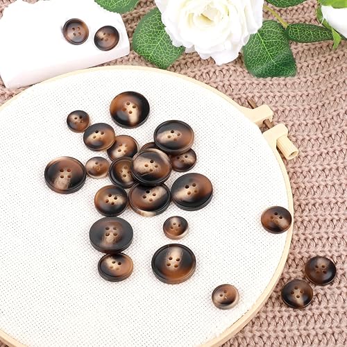 Lot de 50 boutons à coudre ronds en résine soufflée foncée - 4 trous - 4 tailles - Pour vêtements, travaux manuels, costumes, manteaux, couture, loisirs créatifs