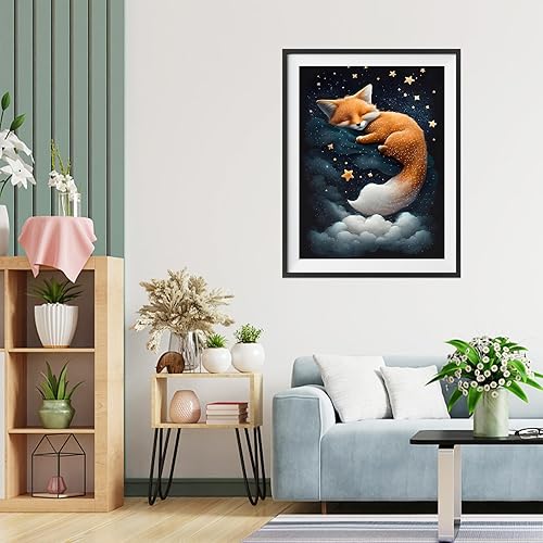 TOSTOG Diamond Painting Kit Adulte Débutant,Renard Étoiles 5D DIY Diamant Painting Images Ronde Diamond Peinture Diamant Adulte,Cristal Débutant Art Set pour Décoration Murale Maison 30x40cm