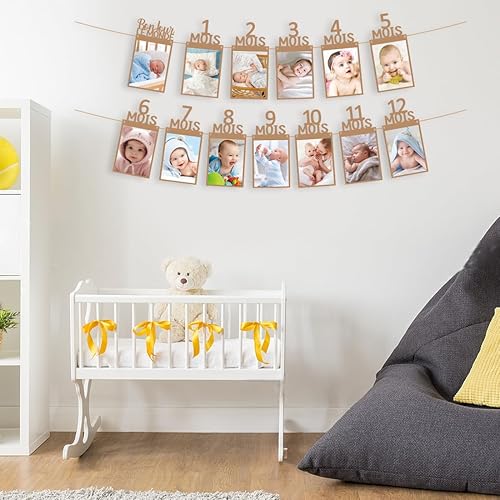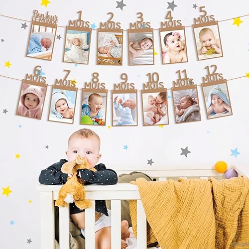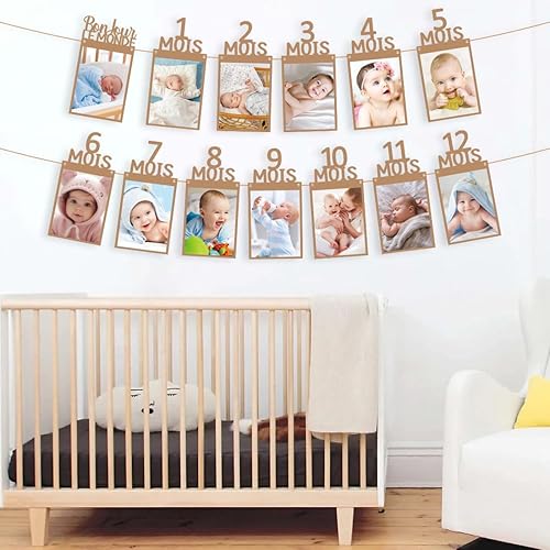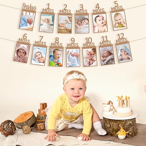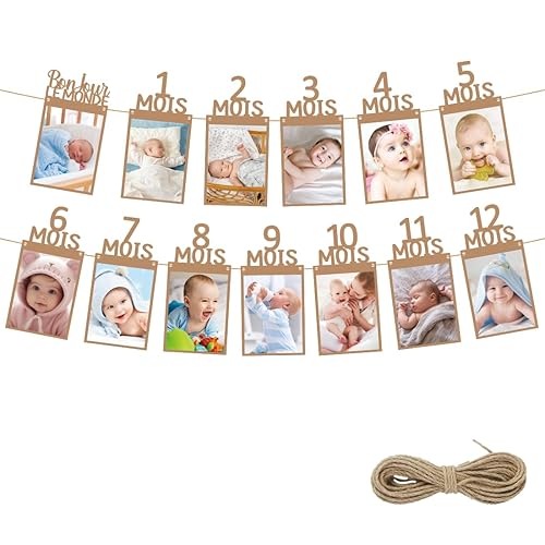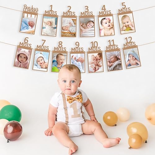 Guirlande Anniversaire 1 an, Bannière Photo 0-12 Mois, Banderole Photo Anniversaire, Guirlande Papier Kraft pour Garçon Fille Première Anniversaire Decoration