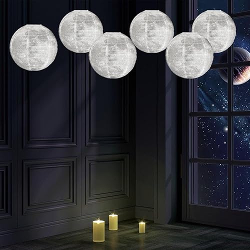 ROYJJ Lot de 6 lampes en papier lune, décoration à suspendre sur le thème de l'espace mystérieux pour garçons et filles