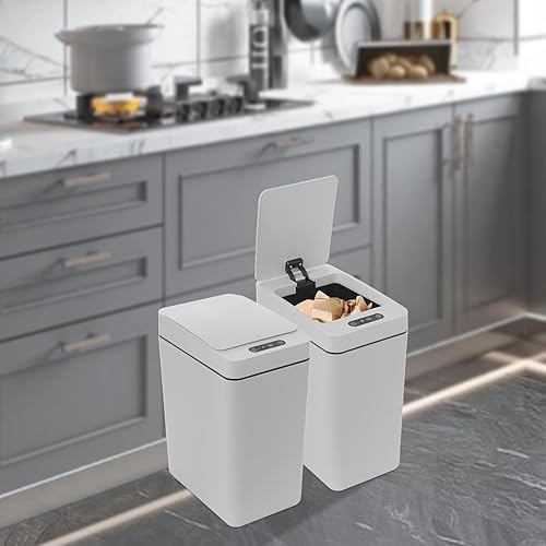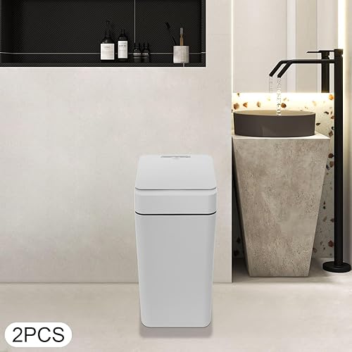 RjcdOPL Lot de 2 Poubelle à Capteur Automatique 12L, 3 Modes d'Ouverture, Étanchéité IPX5, pour Cuisine, Salle de Bain, Chambre, Salon (Beige)