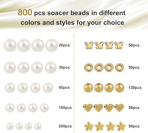 800pcs Kit de Perles de Bracelet, Kit de Fabrication de Bracelet Bricolage Perles de Nacre pour la Fabrication de Bijoux pour Adultes Filles Fournitures de Fabrication de Bijoux