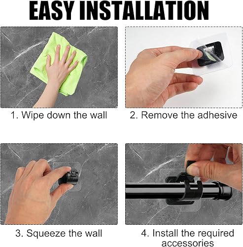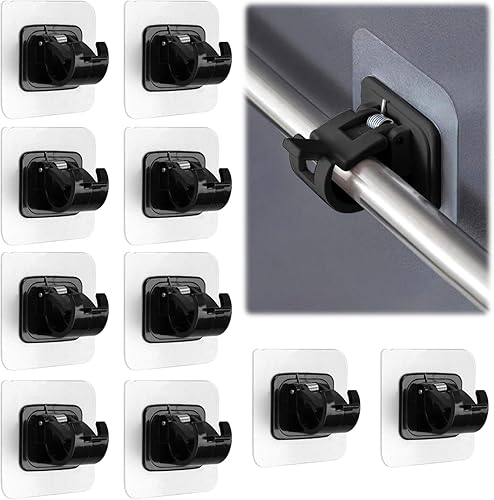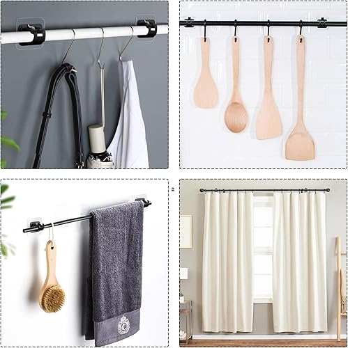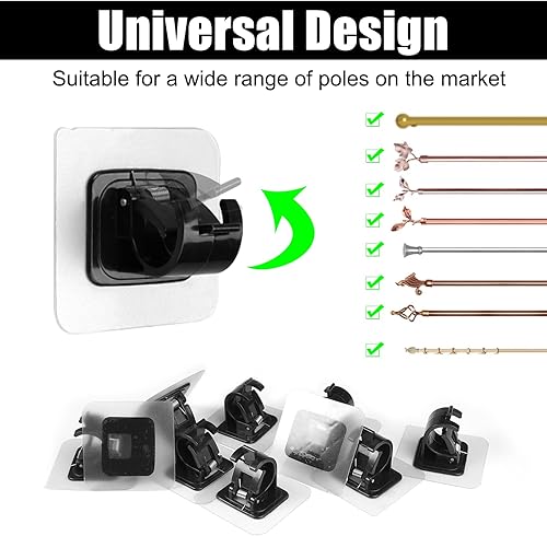 10 Pièces Support Rideau sans Percage Crochets Auto-Adhésifs Porte Tringle Rideau Sans Percage Support de Tringle à Rideaux sans Percage Suspendus Porte-Serviettes pour la Maison Cuisine (Noir)