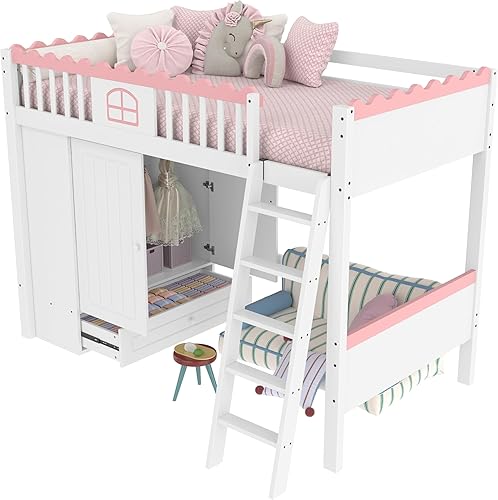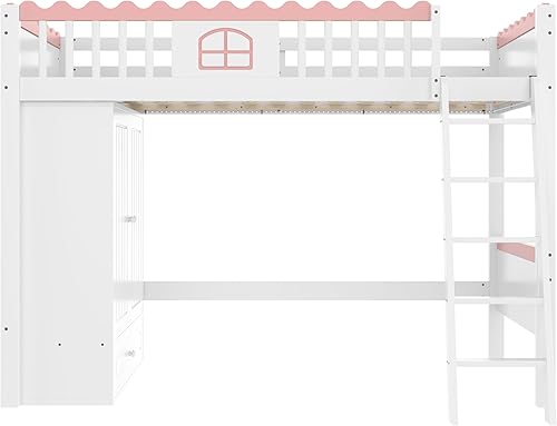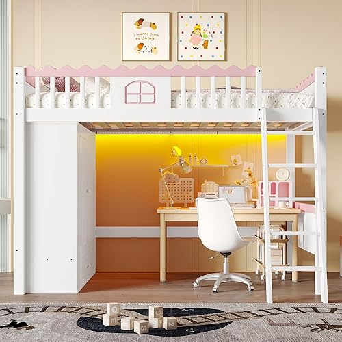 Zepneiy Lit Mezzanine 1 Place avec LED, Lit Mezzanine avec étagères, Lit Enfant 90x200 avec Toboggan, en Pin Blanc(sans Matelas)