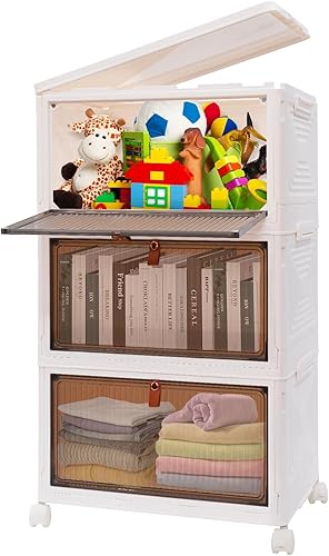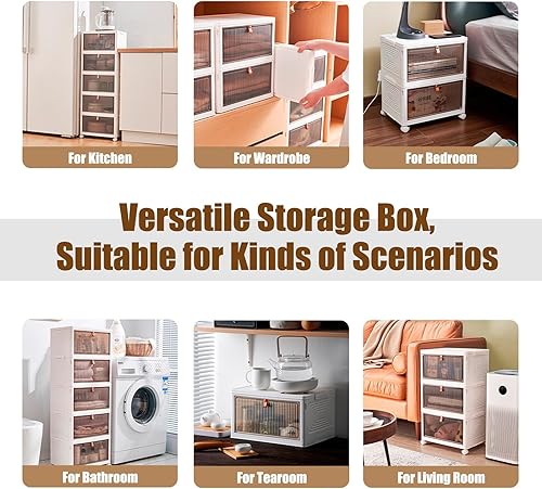 Boite Rangement Plastique, Boîte de Rangement Pliable à Trois Couches, Caisse Rangement Plastique Boite de Rangement avec Couvercle