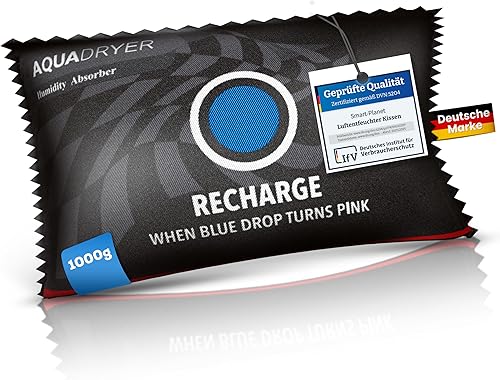 Smart-Planet® Coussin déshumidificateur de voiture - 1000 g - Réutilisable - Anti-fuite - Avec indicateur d'humidité - Contre la buée - 1 kg - Pour voiture, maison, caravane