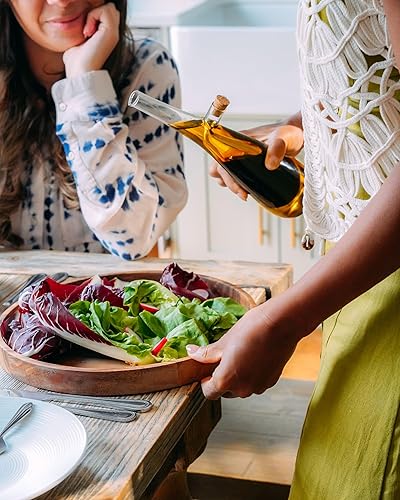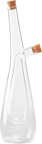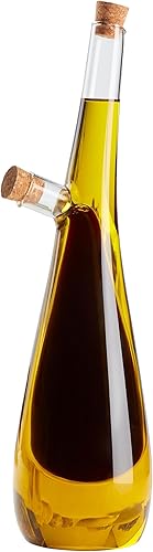 Tala Bec verseur et bruine en verre élégant pour stocker et verser l'huile et le vinaigre, double stockage dans un design incurvé contemporain avec bouchons en liège et