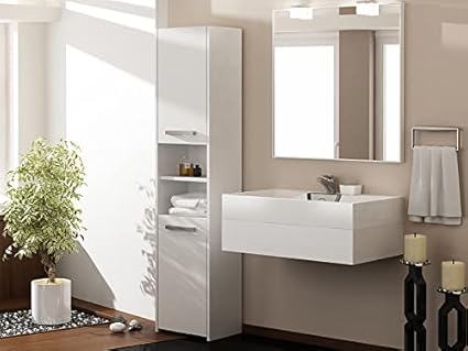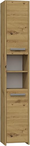 ADGO S30 Armoire de salle de bain, 30 x 30 x 170 cm, haute, étagère, meuble rabattable, étroite, autoportante, chêne artisan