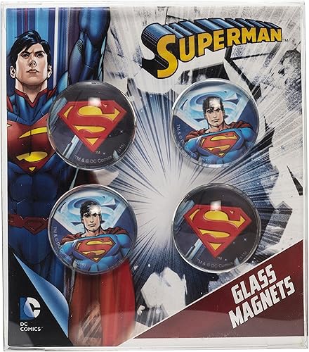 Joy Toy 301013 – Superman Aimants De 2,5 cm en Verre, 4 pièces dans Un Emballage Cadeau, 1 x 8,5 x 9,5 cm