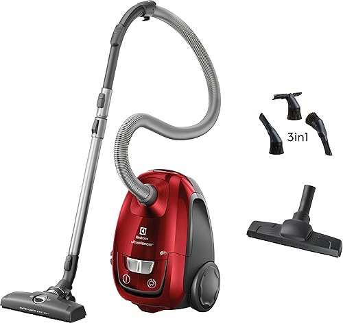 Electrolux UltraSilencer, Aspirateur Traineau Ultra Silencieux avec Sac, 64dB, Puissant, Poignée Ergonomique, Accessoires, Capacité 3,5L, EUSC66-CR, Rouge
