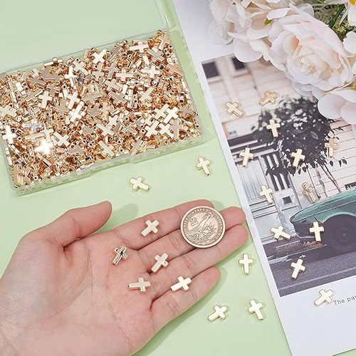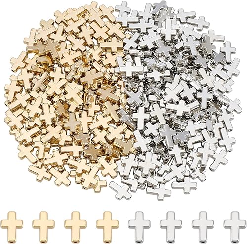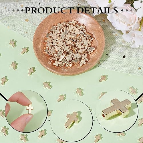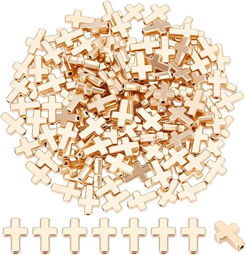 CRAFTYMELODY 440 pièce de Perles en Forme de Croix Dorées Perles D'Espacement en Forme de Croix Crucifix Perles de Charme Sacré en Vrac Perles de Crucifix en Plastique Perles de Prière Accessoires