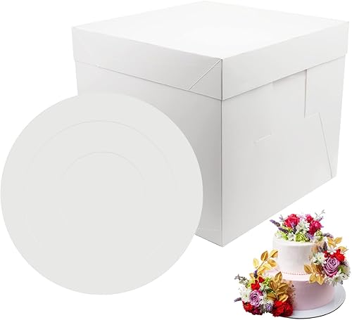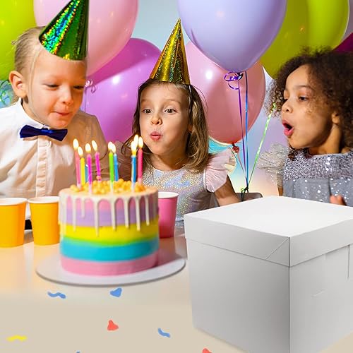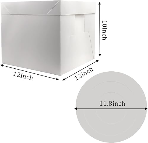PHULWEL Lot de 4 boîtes à gâteau avec planche à gâteau pour gâteaux d'étapes, blanc avec planche à gâteau, plateau à gâteau jetable – 12 x 12 x 10 in