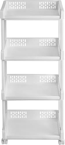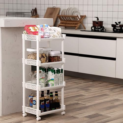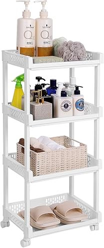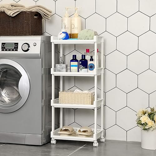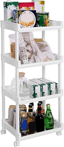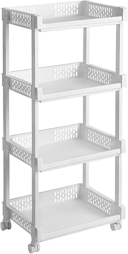 SONGMICS Chariot Roulant, Meuble de Rangement Mobile, Commode sur roulettes, pour Cuisine, Salle de Bain, Bureau, 4 Niveaux, Hauteur de 86cm KSC04WT
