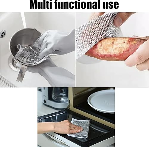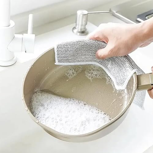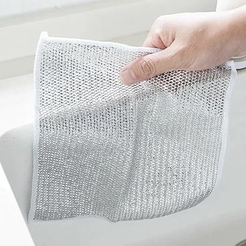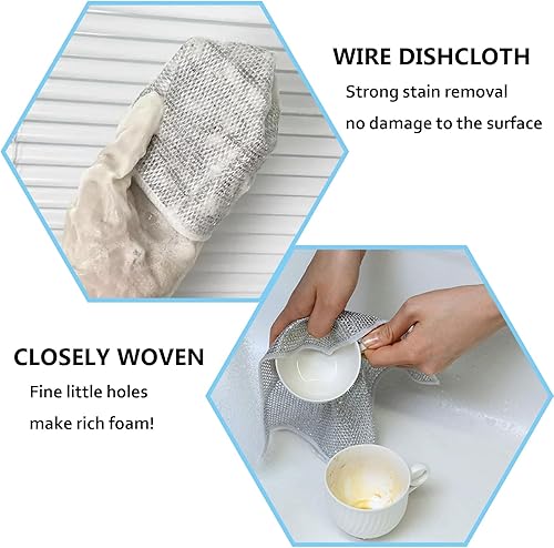 10 Pièces Chiffons à Vaisselle en Fil métallique Polyvalents pour humides et secs, Chiffons à Vaisselle en Fil de Récurage Anti-Rayures, Torchon Métallique Multifonctions Réutilisables
