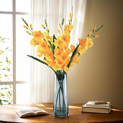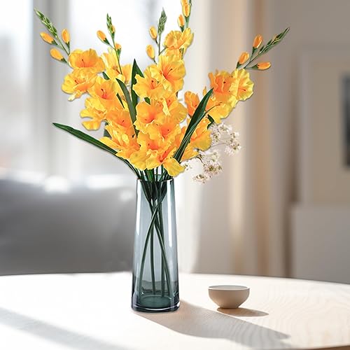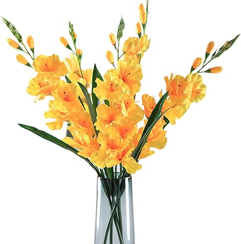 Glaïeuls Fleurs artificielles, 5pcs 25,6 Pouces de glaïeul réaliste avec 3 bourgeons et 7 Fleurs à Faible Entretien en Faux Verdure décorative pour Le Mariage à la Maison, Jaune, Fausse Verdure, glaï