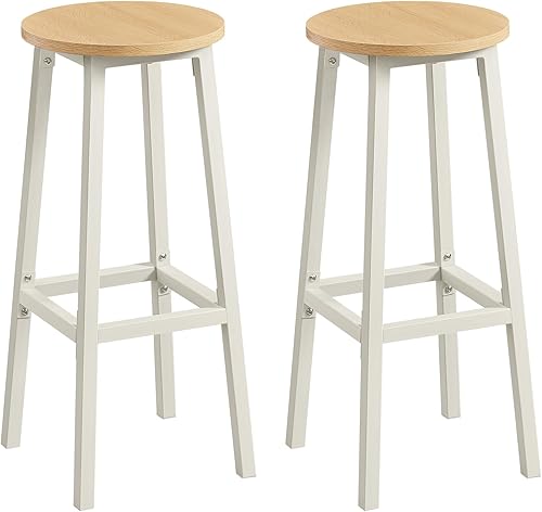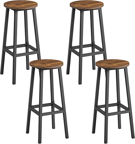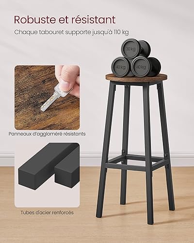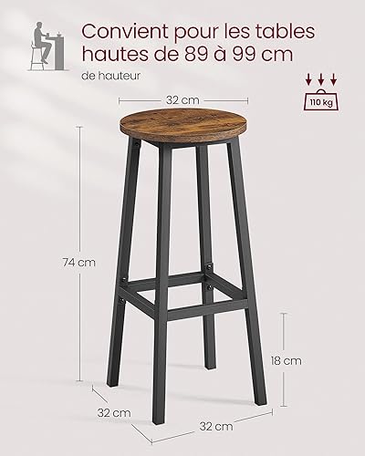 VASAGLE Tabourets de Bar, Lot de 2, Chaises, Siège Haut, Cadre Métallique, Montage Facile, Hauteur 74 cm, Repose-Pieds, pour Cuisine, Salon, Salle à Manger, Marron Rustique et Noir LBC132K01