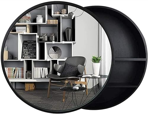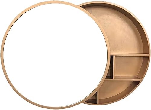 Meuble Miroir Salle De Bains Miroir Meuble Rond en Bois Massif Miroir Meuble Salle De Bains Miroir Dressing Miroir Mural Rangement Miroir (Couleur Bois 70cm)