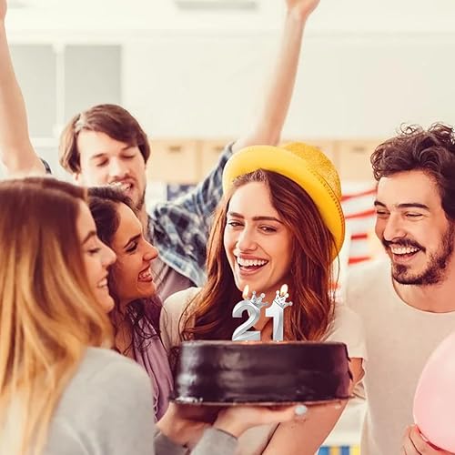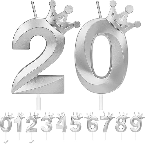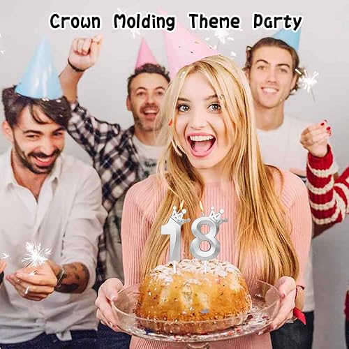 Bougies d'anniversaire Numéro 18,3D Argent Bougie Chiffre 18,Bougies d'anniversaire avec Couronne,pour fêtes d'anniversaire,anniversaires,anniversaires de mariage (Argent, 18)