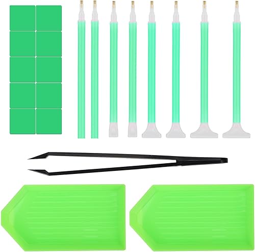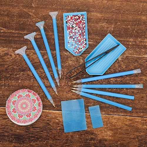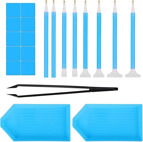 21pcs Outils de Peinture Diamant DIY, Stylos de Peinture Diamant Colle Argile Pincettes et Plateau Plastique Fournitures et Accessoires de Peinture Diamant pour l'Art l'Artisanat (Bleu)