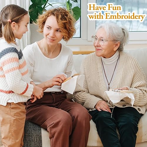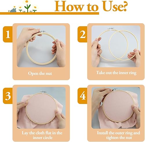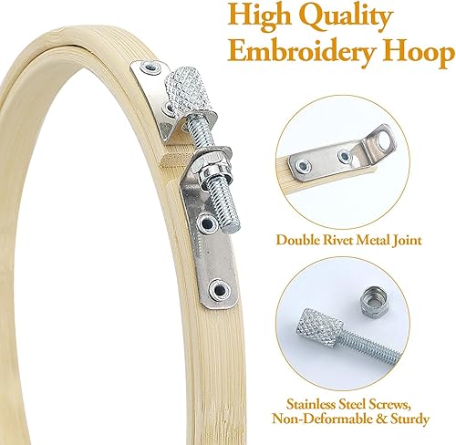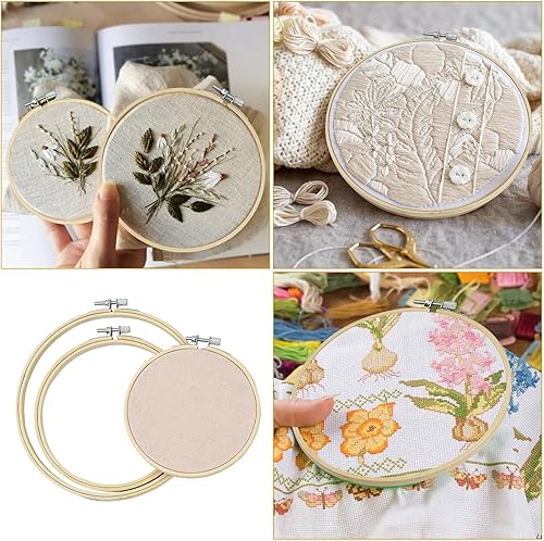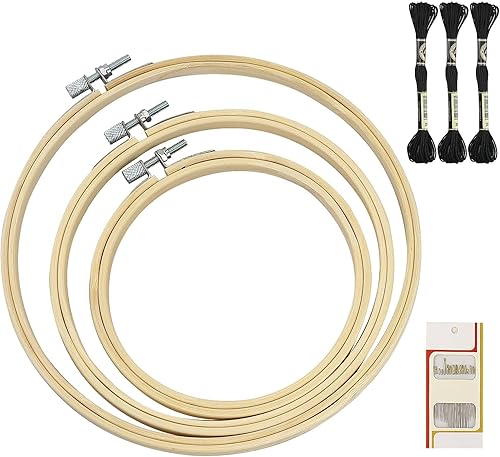 Ensemble de cercles à broder ronds - 3 anneaux réglables pour point de croix - Cadre à broder de 20 cm - Grand cadre à broder en bois - Cadre à broder en bambou - Avec 16 aiguilles à coudre et 3 fils