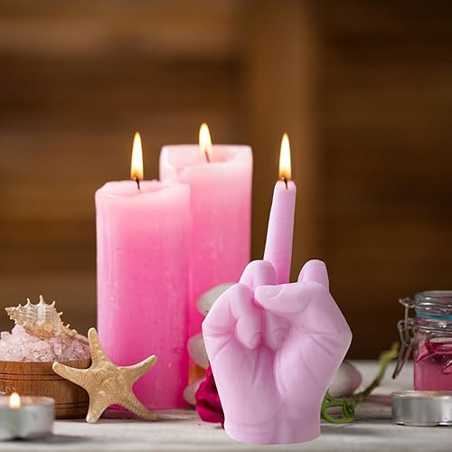 Bougie en forme de doigt d'honneur - Bougie fantaisie unique - Bougie élégante pour décoration de chambre d'adolescent, décoration de chambre, cadeau d'anniversaire, rose (5,4 x 4,5 x 9,2 cm)