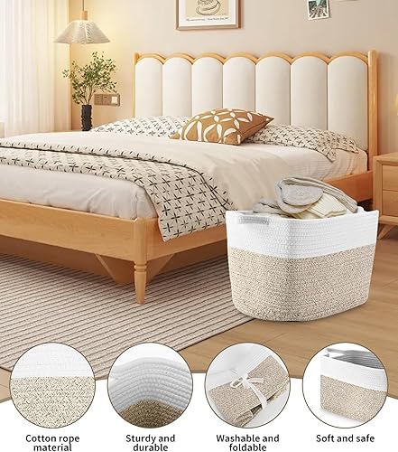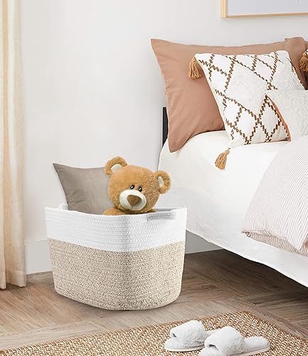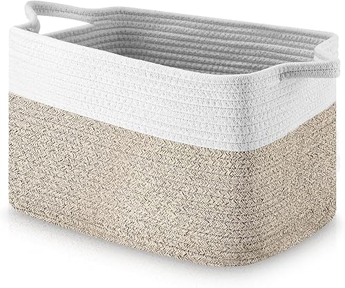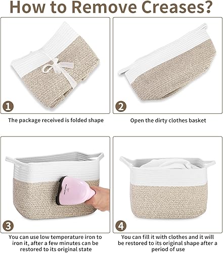 Panier à Linge en Coton Tissé,Corbeille à Linge,Grand Panier en Coton,33x25x23 CM,avec Poignée,Panier à Linge pour Ranger Couvertures,Enfants,Panier de Buanderie pour Vêtements Bébé,Blanc Jute