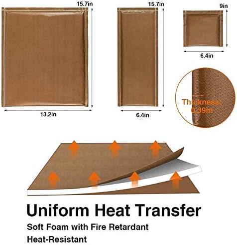 Huudngeje Lot de 5 tampons de transfert de chaleur en PTFE - 3 tailles - Avec 2 feuilles de presse à chaud en PTFE - Pour presse à chaud - Numérique