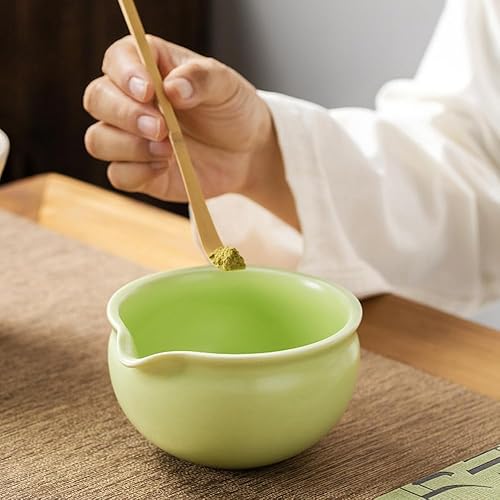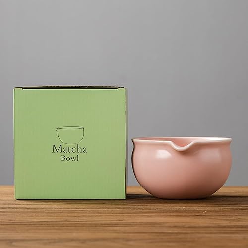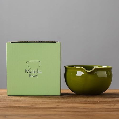 YlobdolY Bol à matcha en céramique avec bec verseur, bol traditionnel fait à la main en porcelaine émaillée japonaise de couleur unie avec coffret cadeau pour fouetter le matcha blanc vif