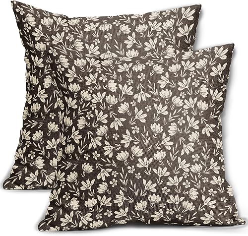 Aytipun Lot de 2 housses de coussin marron foncé, 45,7 x 45,7 cm, motif floral vintage, rustique, joli imprimé floral, décoration pour extérieur, canapé, sofa et lit, 45,7 x 45,7 cm