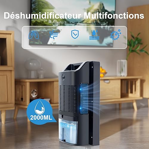 CITYBEE Deshumidificateur d Air Électrique 2000ml, Dehumidificateurs Maison Silencieux Anti Moisissure Minuteur 24H Nettoyage UV, Mode Sommeil Dehumidifier Salles de Bain pour Chambre Armoire (Blanc)