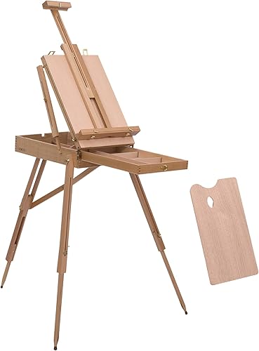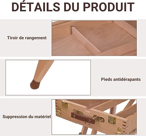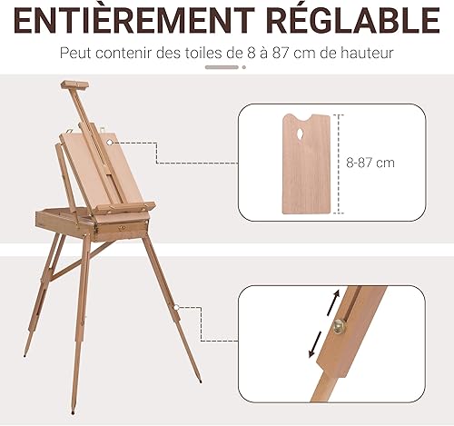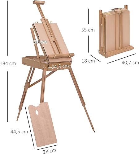 HOMCOM Chevalet d'artiste sur pieds pliable mallette de peinture chevalet avec rangement hauteur réglable bois de hêtre clair