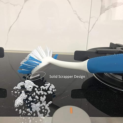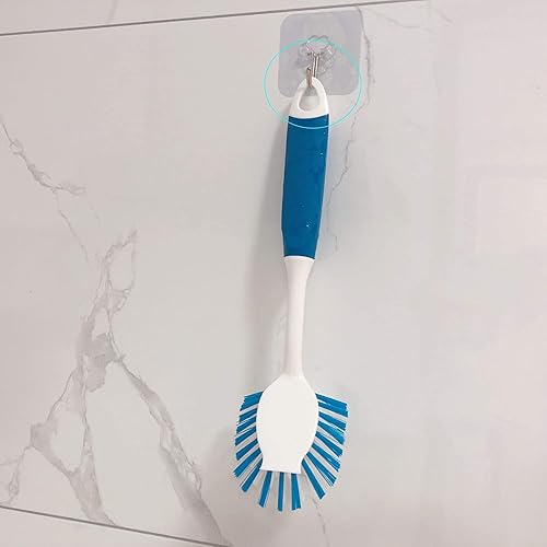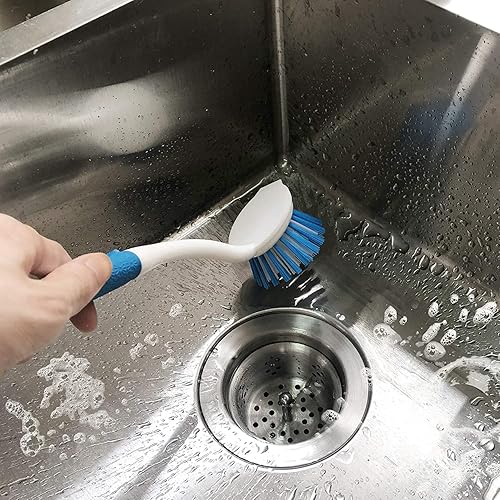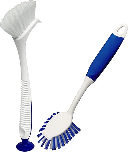 ALINOUHA Brosse à Vaisselle - Brosses de Nettoyage pour Évier de Cuisine - Lot de 2 - Poignée Confortable et Ventouse - Poils Rigides en Nylon ou Plastique - Blanc