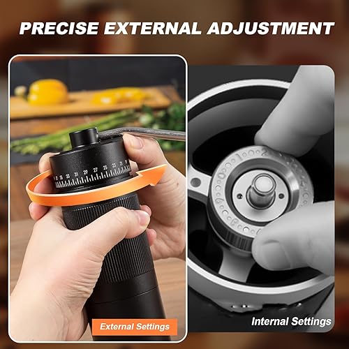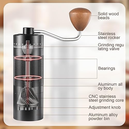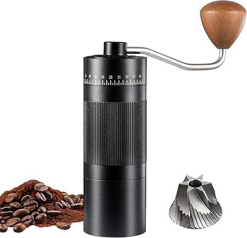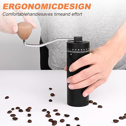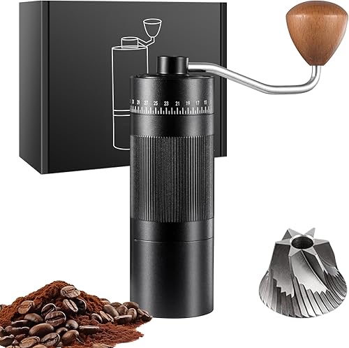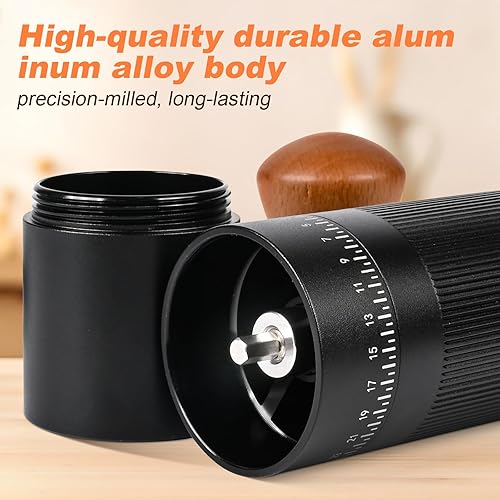 Moulin à café manuel, Moulin à meules léger coniques en acier inoxydable avec 50 réglages de mouture Moulin à café expresso sans plastique avec manche en bois pour la maison, le bureau et les voyages