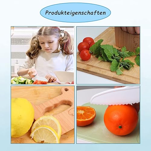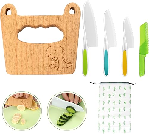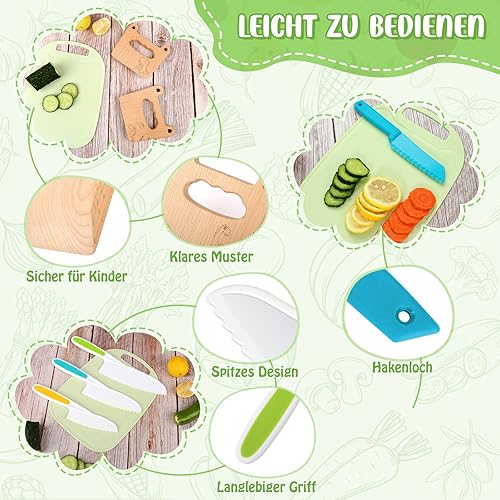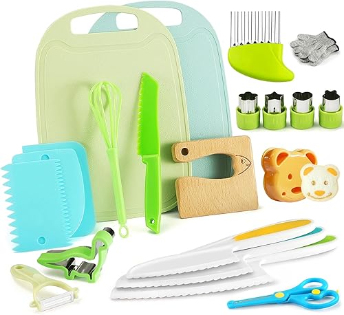 Lot de 13 couteaux de cuisine pour enfants pour couper et cuisiner des fruits ou légumes pour les tout-petits, avec couteau en bois, planche à découper, éplucheur (poisson)
