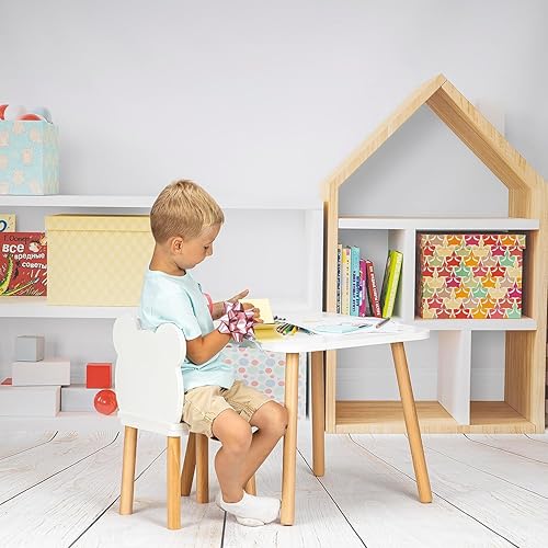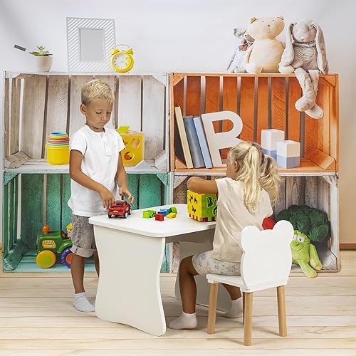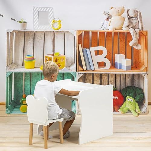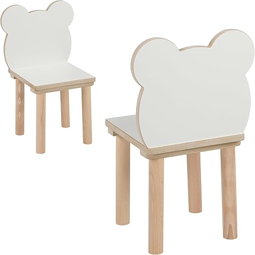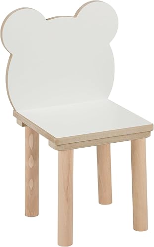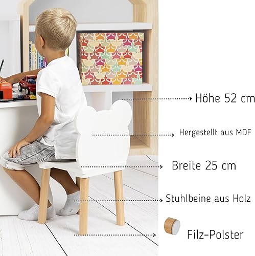 PlayPals Chaise en bois, pour enfant, petite chaise en bois, petit ours en peluche, meuble pour chambre d'enfant, 52 x 32 x 32 cm et une hauteur d'assise de 27 cm