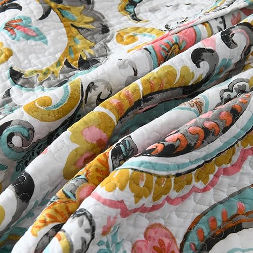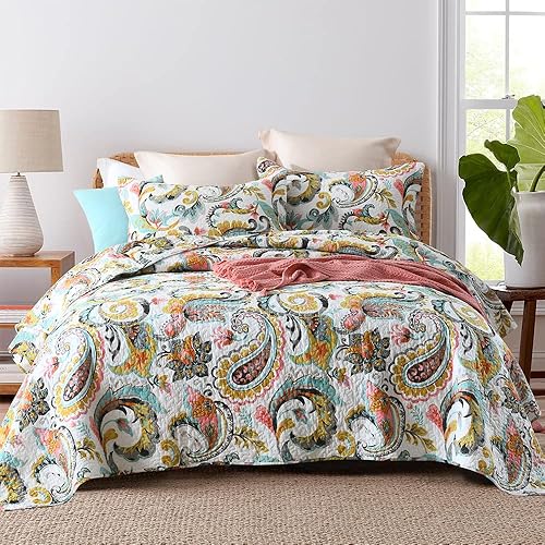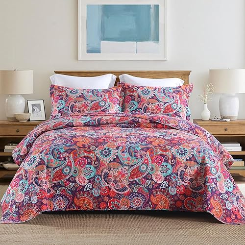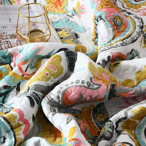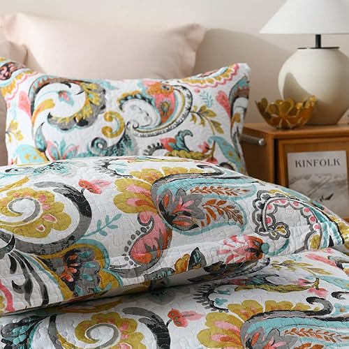 VISIMISI Couvre-lit 220 x 240 cm en coton vert cachemire avec fleurs Jeté de lit 230 x 250 cm avec 2 taies d'oreiller Couverture réversible pour toutes les saisons pour lit double