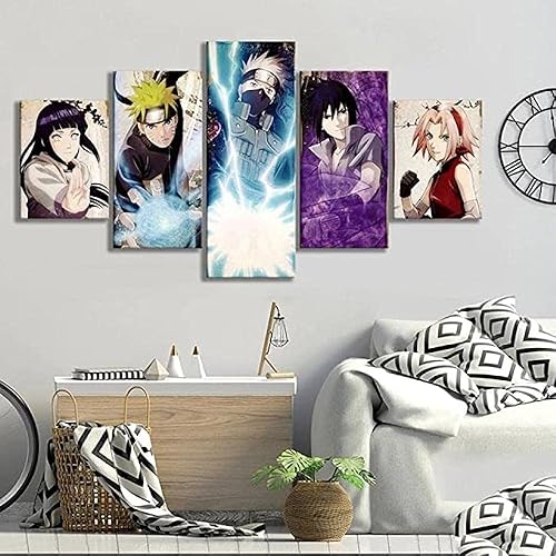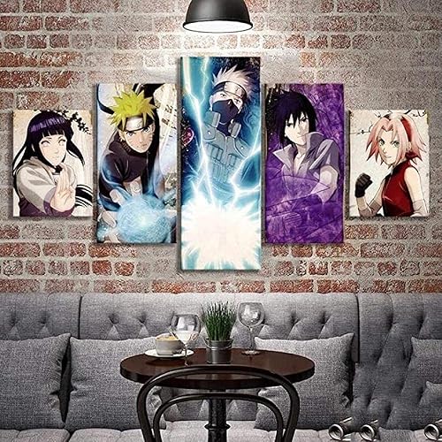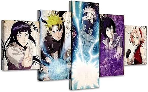 QZWXEC® Naruto Kakashi Sasuke Anime imprimé Tableau Multi Panneau 5 Parties Tableau Murale Impression sur Toile Intissee 5 Parties Abstrait Chambre Salle Décoration Moderne 100x55cm avec Cadre