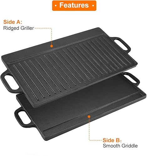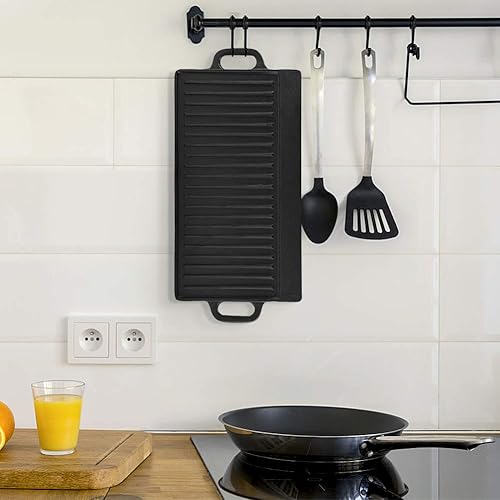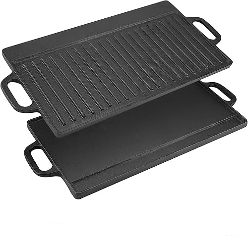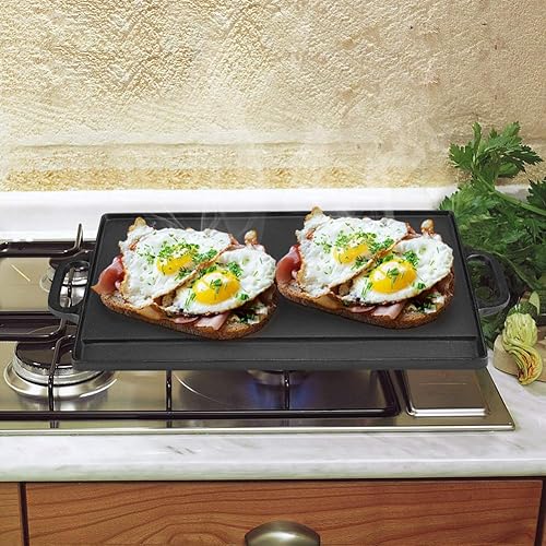 Plaque de Gril en Fonte Double Face, Antiadhésive, avec Poignées Intégrées, pour Plaque à Induction