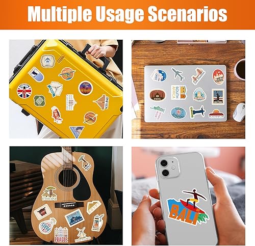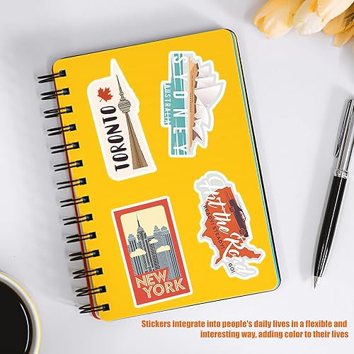 Lot de 100 autocollants de voyage mondiaux célèbres pays ville symboles monuments autocollants en vinyle imperméable pour valise, bagage, skateboard, guitare, ordinateur portable, scrapbooking, album