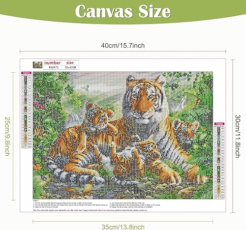 DAERLE 5D Diamond Painting Animal sauvage, DIY Broderie Diamant Painting Kit Complet Tigre et lionceaux, Peinture Diamant Artisanat Strass Point de Croix Painting pour Adultes, Enfants 40x30 cm