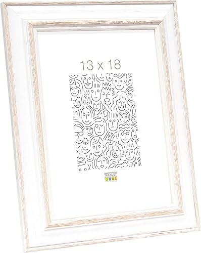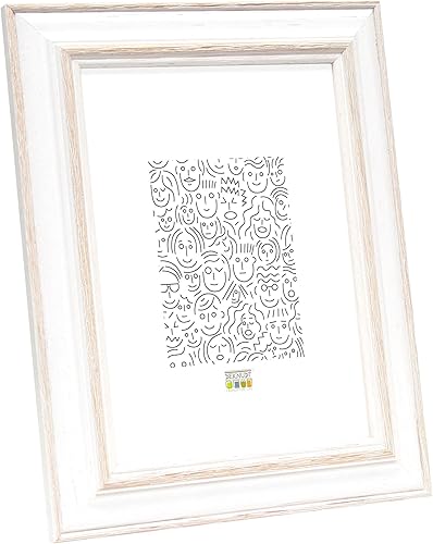 Deknudt Frames - Cadre photo en bois pour photo 20x30cm - blanc avec biseau bois clair - pour accrocher ou poser - pour affiches ou posters - S221H1 20x30