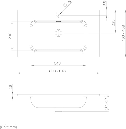 BAIKAL Lavabo Salle de Bain Blanc 80cm Vasque a Encastrer Rectangulaire Lavabo en Ceramique. Vasque Salle de Bain Lave Mains